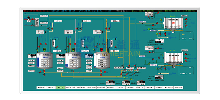 為保證膜過濾裝置在生產(chǎn)中安全、穩(wěn)定運(yùn)行,誠益通推出了膜過濾自動化控制系統(tǒng),此系統(tǒng)已廣泛應(yīng)用在陶瓷膜、金屬膜、有機(jī)膜等過濾系統(tǒng)中,達(dá)到了提高工作效率、節(jié)能降耗、延長設(shè)備使用壽命、分離完全純化簡單的目的。