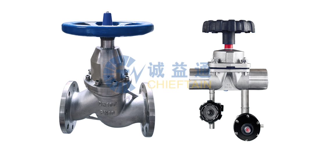 隔膜式截止閥膜片是公司專利產品,在隔膜中部設有安裝孔,隔膜內部有剛性骨架,隔膜材料為聚四氟乙烯,耐高溫消毒,拉伸性能及密封性能好,性價比高,因此被廣泛應用于奶制品行業(yè)及耐酸堿要求的生產過程控制領域,是生化制藥行業(yè)的優(yōu)選產品。